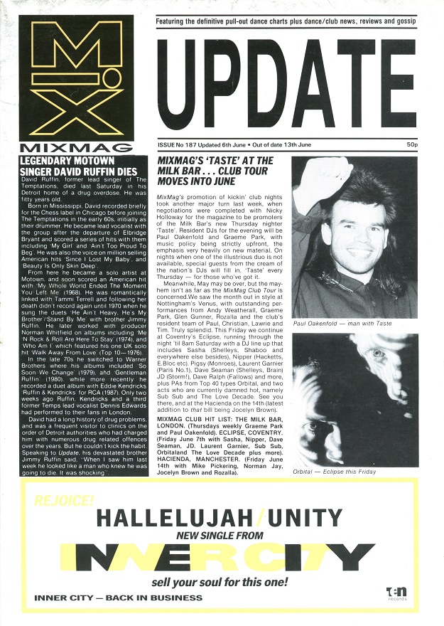 Issue No.187 - 13th June 91 - Mixmags 'Taste' At The Milk Bar... Club Tour Moves Into June